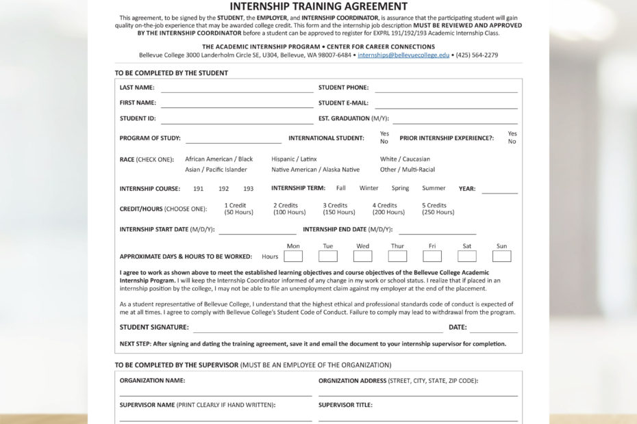 Bellevue College – Internship Training Agreement Form